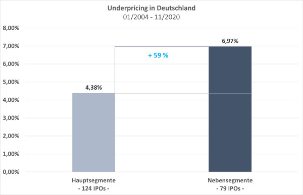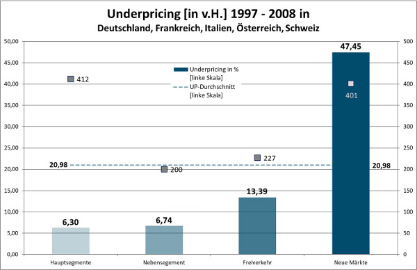 Underpricing kann aus Investorensicht somit interpretiert werden als eine Risikoprämie für die geringere Marktliquidität und die höheren Informationsbeschaffungskosten aufgrund der Verankerung des Emittenten mit den (privat-)rechtlichen Ausgestaltungsparameter der jeweiligen Handelssegmente.