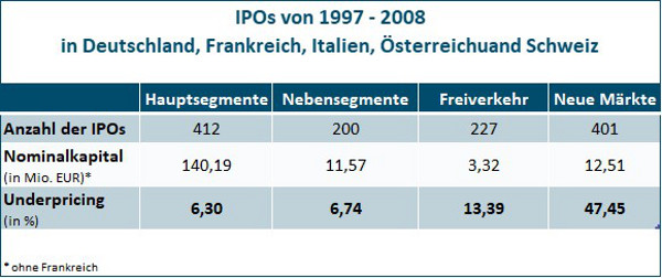 Insofern erscheint es sinnvoll, auch in der Analyse des IPO-Underpricing die Zeit der Neuen Märkte auszublenden